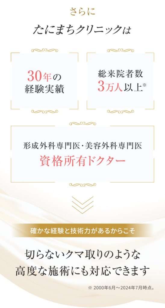 しています。目元のクマ・たるみに悩んでいた患者様からも非常にご満足いただいております。