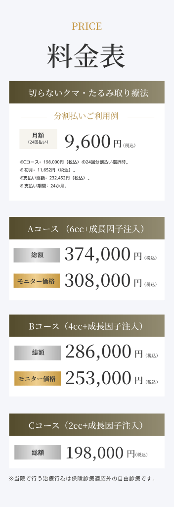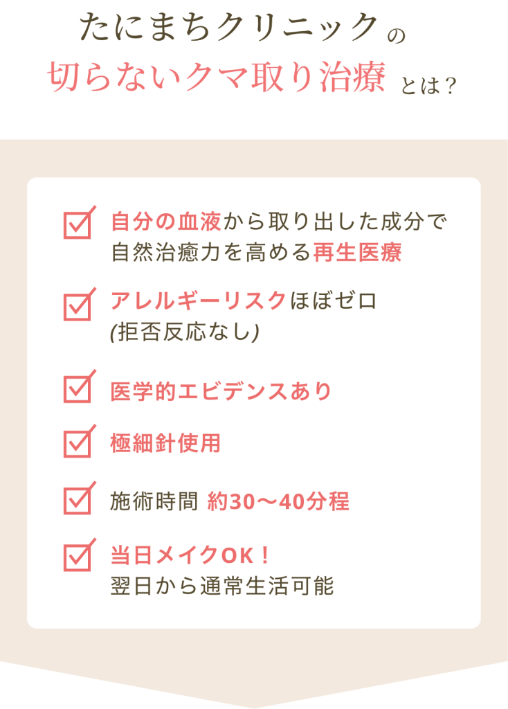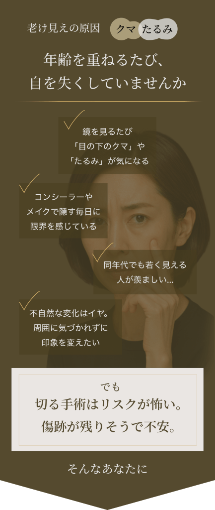 ご自分の組織を注入する方法で「切らないクマ取り」を採用