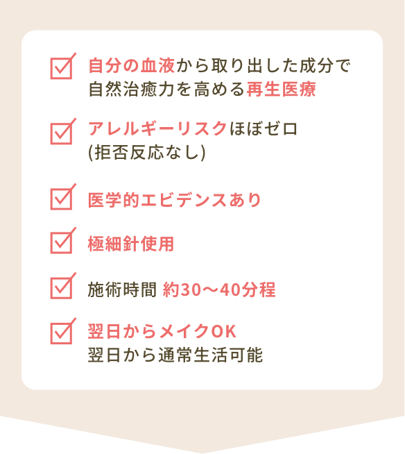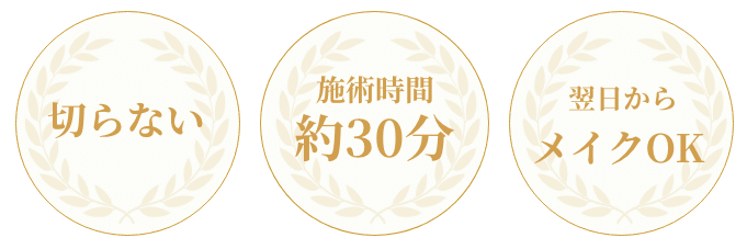切らないクマ取り療法の持続期間は、1~4年となっております。年齢や環境、個人の血小板細胞によって持続結果は異なります。