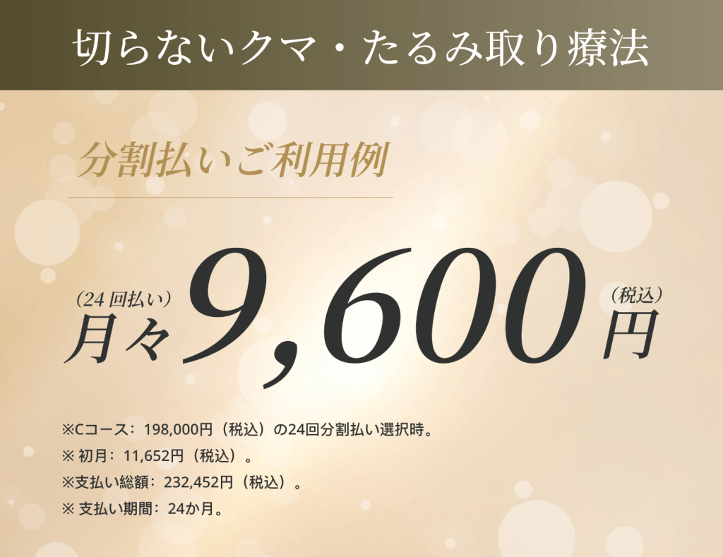 ※Cコース:198,000円(税込)の24回分割払い選択時。※ 初月:11,652円(税込)。※支払い総額:232,452円(税込)。※ 支払い期間:24か月。